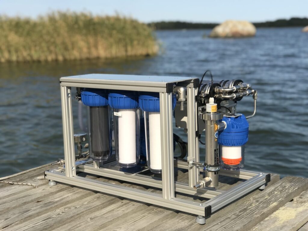SolarRO MINI 150 laite toimii aurinkoenergialla ja tuottaa Itämerestä puhdasta juomavettä 60 L/ t.